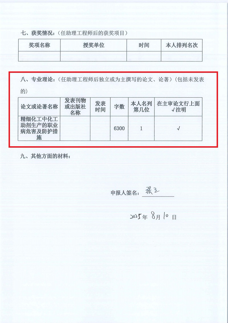 (2)自荐综合材料只需要申报人签名、日期即可,日期就写25.8.10日。