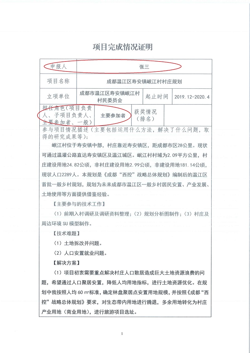 这里项目负责人的签名一定要对应着报名表中项目完成情况这里的项目负责人。逻辑不要乱。